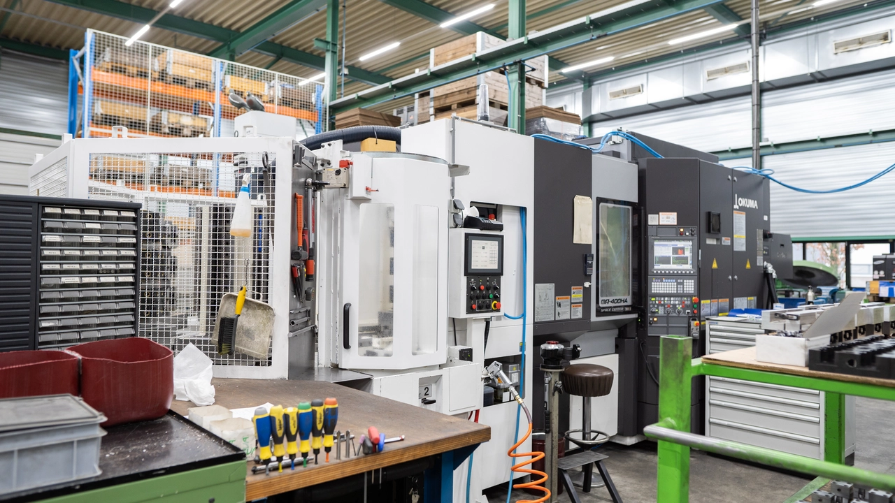 Hier staan 4-assige freesbanken van Okuma en DMG Mori klaar. De ene met Okuma OSP, de andere met Fanuc. Programma wijzigen, proefstuk maken, meten, door. Je stelt de machines in en je stelt ze om. Meerdere keren per week wissel je tussen producten en series. Zo blijf je scherp en trots op het resultaat.